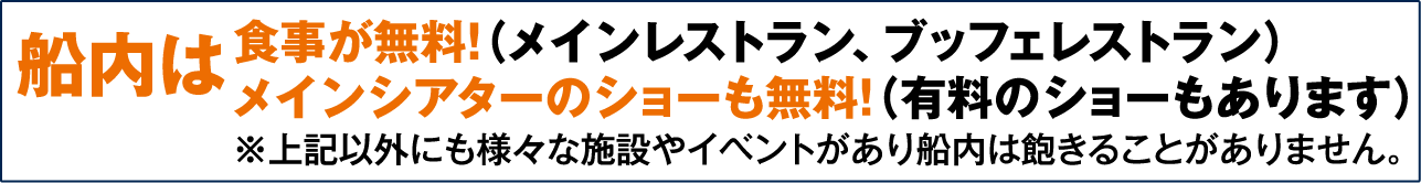 充実した施設をはじめ、様々なショーやお食事をお楽しみいただけます。