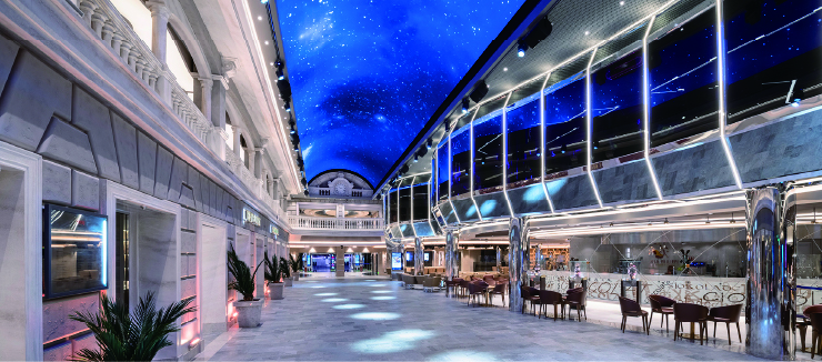 最新の設備とテクノロジーを兼ね備えたMSCベリッシマは、オールシーズン全世代に対して完璧なクルーズ体験を提供します。毎夜シアターで行われる船上でのオリジナルショー、2階建ての巨大なプロムナードや壮大な屋外ウォーターパーク、キッズエリア、そしてそこに本格的なダイニングオプションを加えた今までにない新体験のエンターテインメントをお楽しみください。