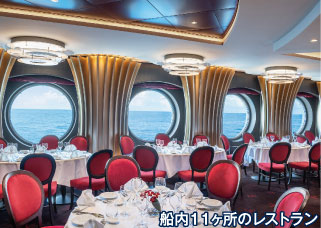 主な施設:レストラン、各種バー、プール(室内プールあり)、ジム、スパ、シアター、カジノ 他